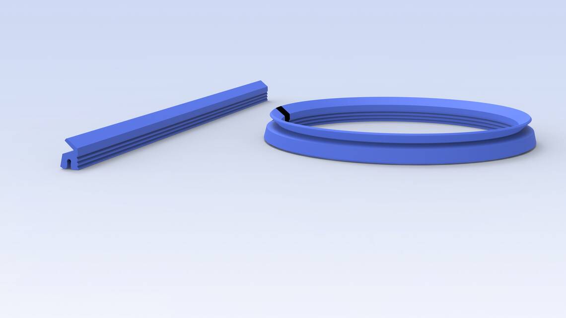 Auf der Basis erster Profilskizzen wurde die Geometrie im CAD ausgearbeitet, detailiert und schliesslich das neue Dichtungsprofil bemustert. Für die gemeinsamen Versuche wurden erste Profilringe geklebt und nach bestandener Prüfung das Werkzeug für die Ringvulkanisation umgesetzt.